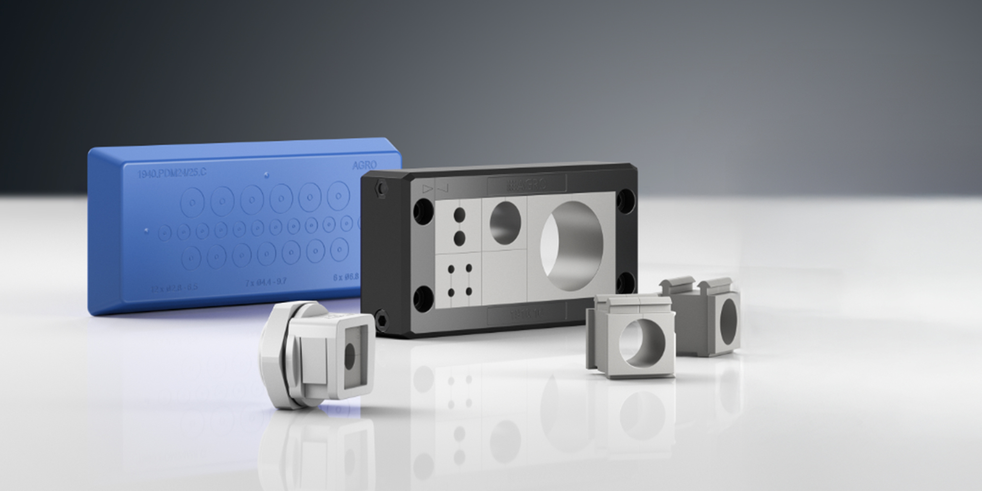 Mit der neuen Serie MCE Syntec hat die schweizerische AGRO AG, ein führender Hersteller von Kabelverschraubungen und Tochterunternehmen der KAISER GROUP, ihr Angebot um ein umfassendes Komplettsortiment an teilbaren Kabeldurchführungen, Kabelverschraubungen und Membranplatten erweitert. Das modulare Kabeldurchführungs-Programm vereinfacht die sichere und dichte Durchführung mehrerer Kabel mit und ohne Stecker in Schaltschränke, Maschinen, Anlagen oder Fahrzeuge.