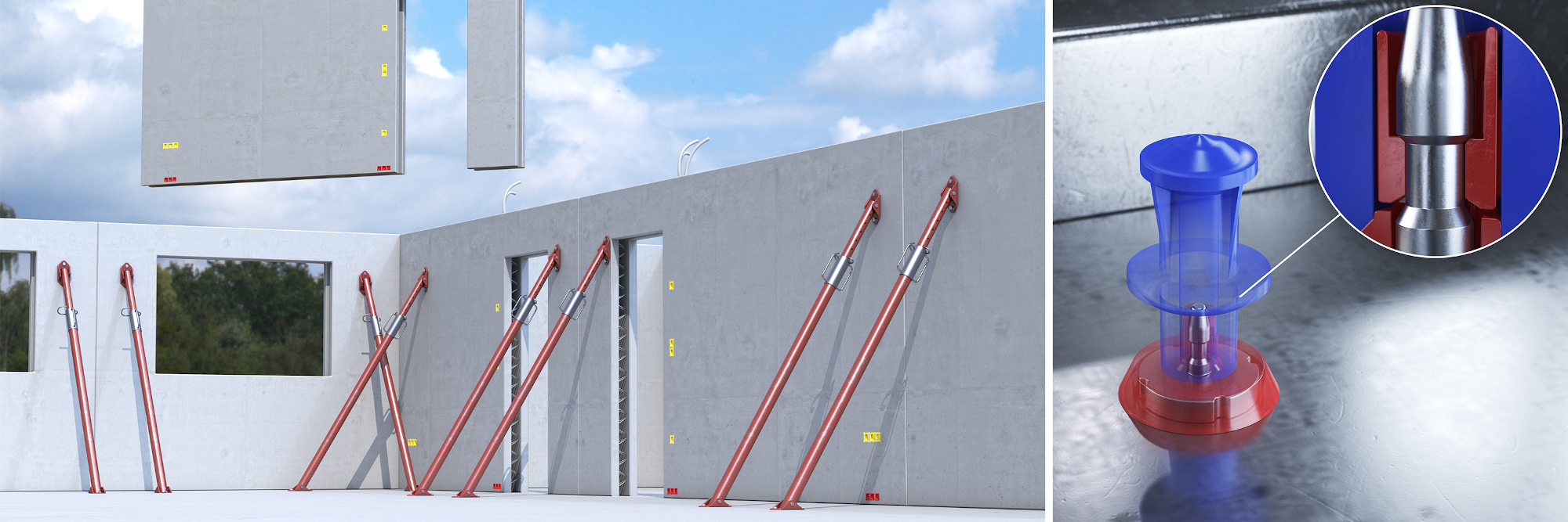 Über die Elektroinstallation hinaus bietet KAISER jetzt auch für Schrägstützenanker und Montagedübel diverse System-Haftmagnet-Adapter an. Damit können in der werksseitigen Vorfertigung weitere wichtige Bauteile per System-Haftmagneten automatisch in Betonfertigteilen platziert werden.