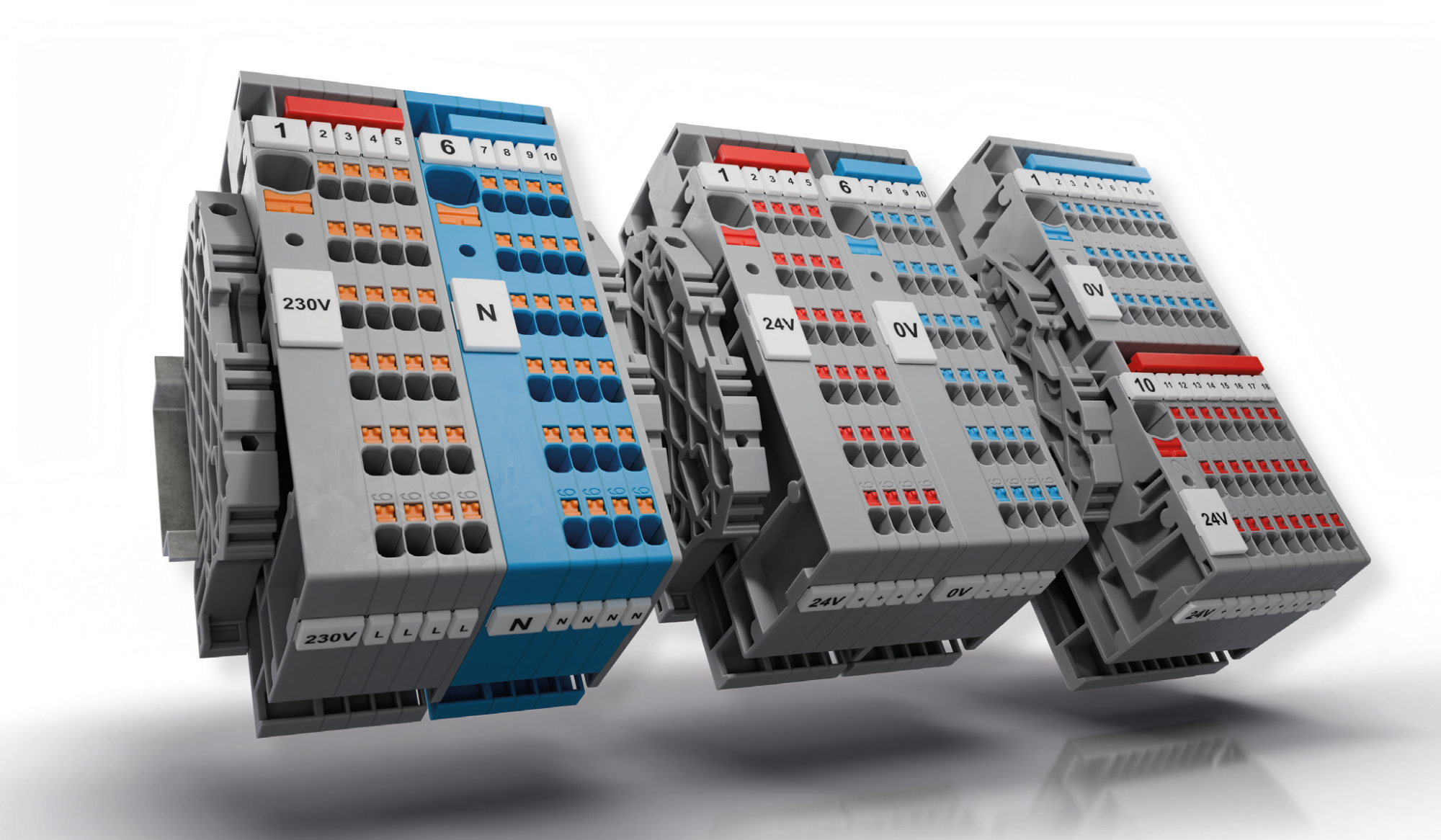 Um Fehlverdrahtungen bei der Stromzuführung im Schaltschrank zu vermeiden – insbesondere bei einer großen Anzahl an Leitungen – bieten die neuen Push-in-Potentialverteilerklemmen PPVK von Conta-Clip die passende Lösung. Sie ermöglichen eine strukturierte und übersichtliche Stromverteilung innerhalb von AC- und DC-Steuerstromkreisen. Dank der kompakten Bauweise und des reduzierten Verdrahtungsaufwands lässt sich die Energieversorgung der Betriebsmittel im Schaltschrank einfach, effizient und platzsparend realisieren.