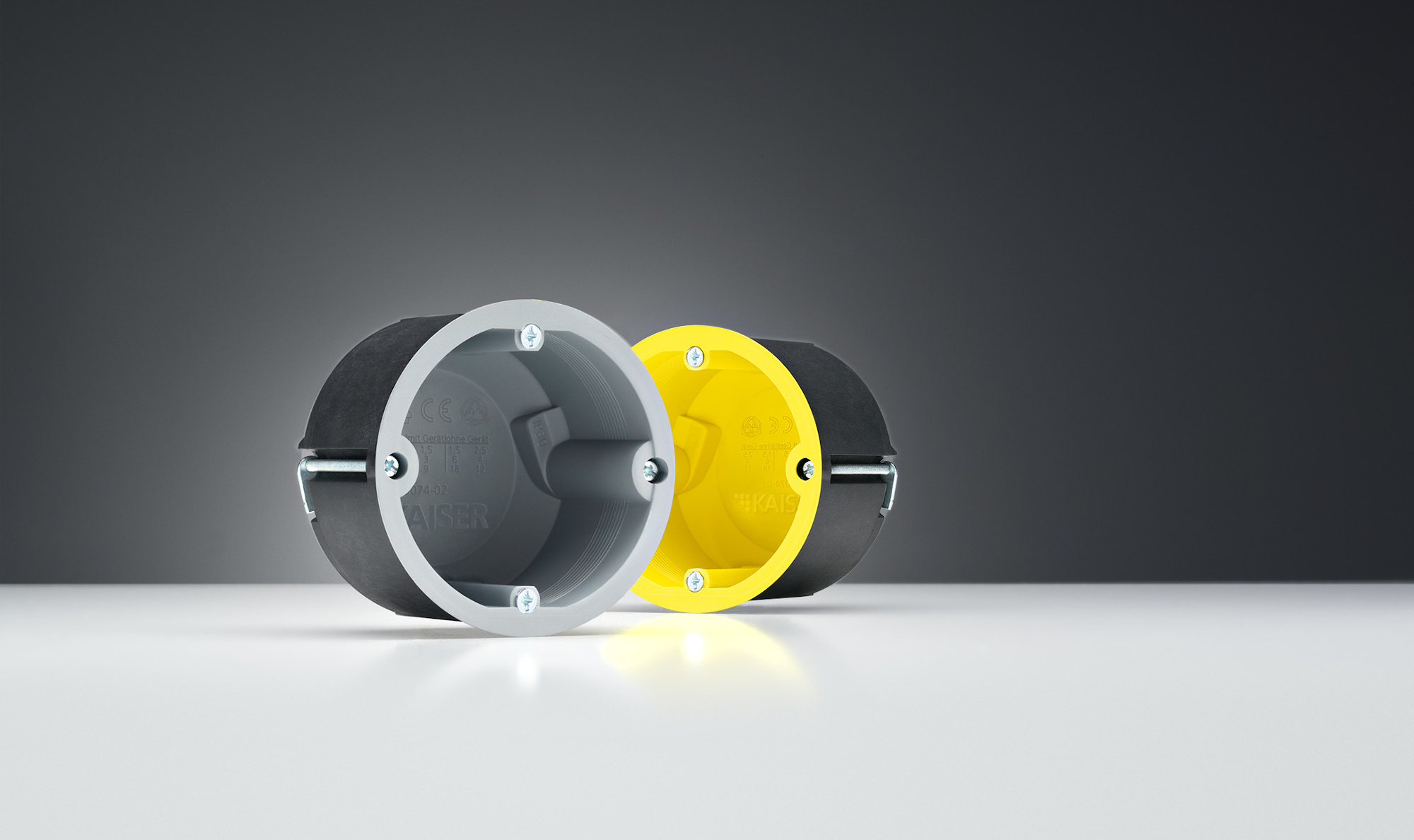 Für geringe Einbautiefen von 45 mm in der Beton-Werksfertigung führt KAISER Gerätedosen der Serie Flat 45 im Programm. Die Geräte-, Geräte-Verbindungs- und Wandleuchten-Anschlussdosen der Baureihe sind für den Einsatz in Kippschalungen ausgelegt.